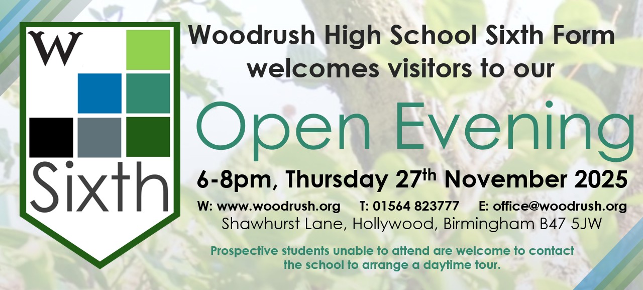 We invite you to attend the Woodrush Sixth Form Open Evening on Thursday 27th November.