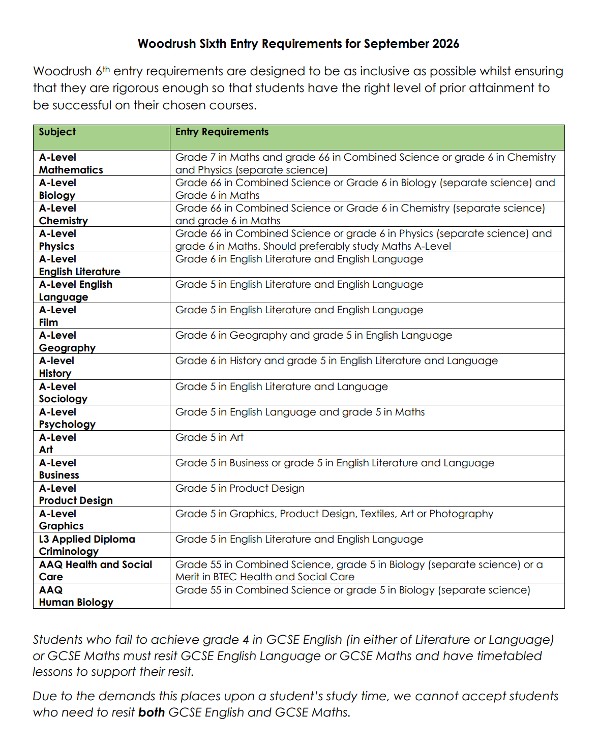 Entry Requirements